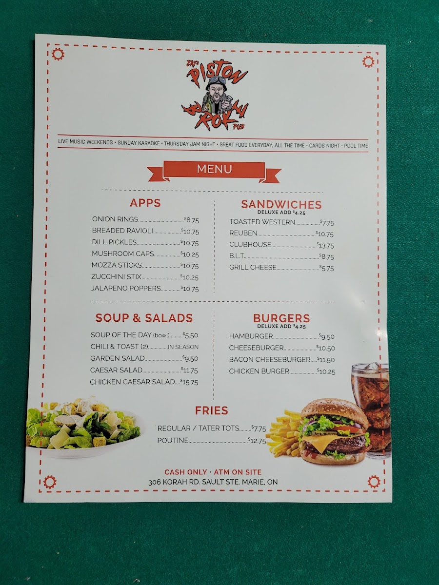 Welcome to Jay's Piston Broke Pub, a vibrant bar and grill nestled in the heart of Sault Ste. Marie, Ontario. At 306 Korah Rd, this local gem attracts both residents and visitors alike, creating a delightful hub for food lovers and socializers. With a friendly atmosphere and accommodating service, it's the perfect spot to unwind with friends or enjoy a casual evening out.